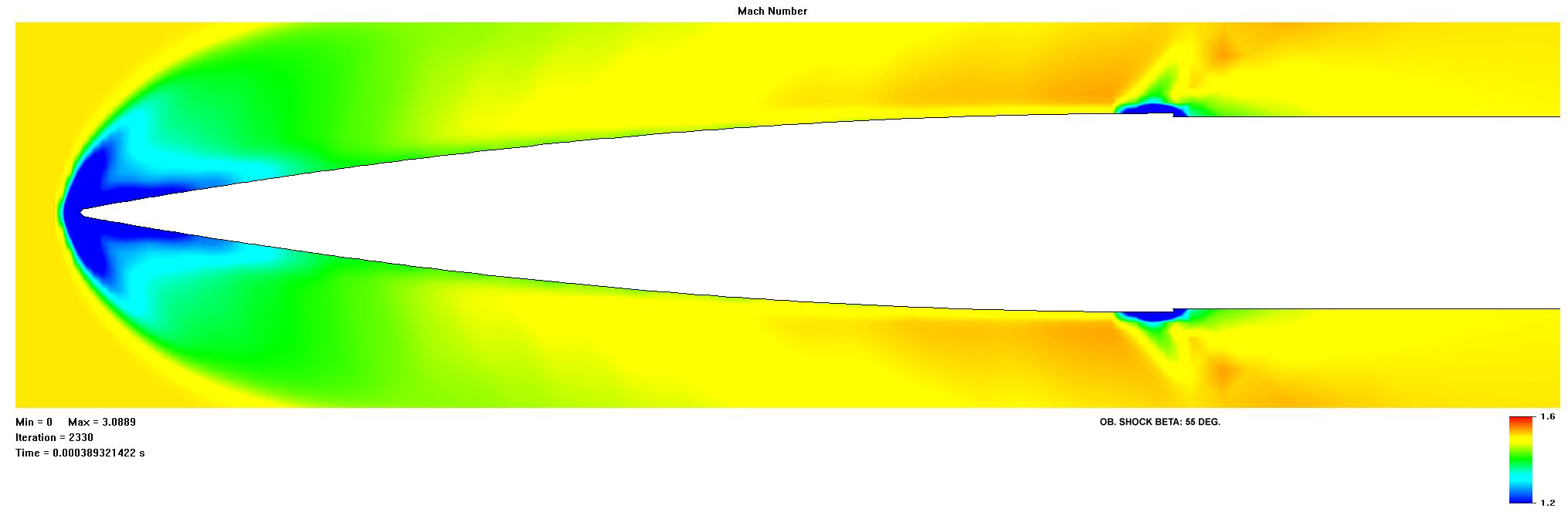 For this project, I wanted to do a basic CFD analysis on the fullscale rocket in order to get a better idea as to the shocks and airflow around the fins. I have had no experience with CFD prior to this, but I took it as a learning opportunity to understand the basics of mesh generation. ANSYS Fluent was still foreign to me at the time, but during this project I was getting the hang of Solidworks’s Flow Simulation. I generated a global and several local meshes and began the process in the solver. The results show oblique shock formation and Prandtl-Meyer expansion fan occurring after the nose cone.